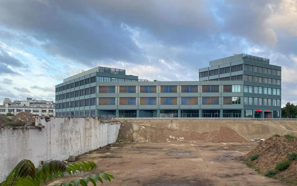 Institutsgebäude für die Technische Hochschule Nürnberg als erstes Gebäude der Quartierserweiterung Auf AEG Nord. Stahlbetonskelettbau mit Metallfassade und unterschiedlichen Nutzungsbereichen, unter anderem verschiedene Maschinenbaulabore.